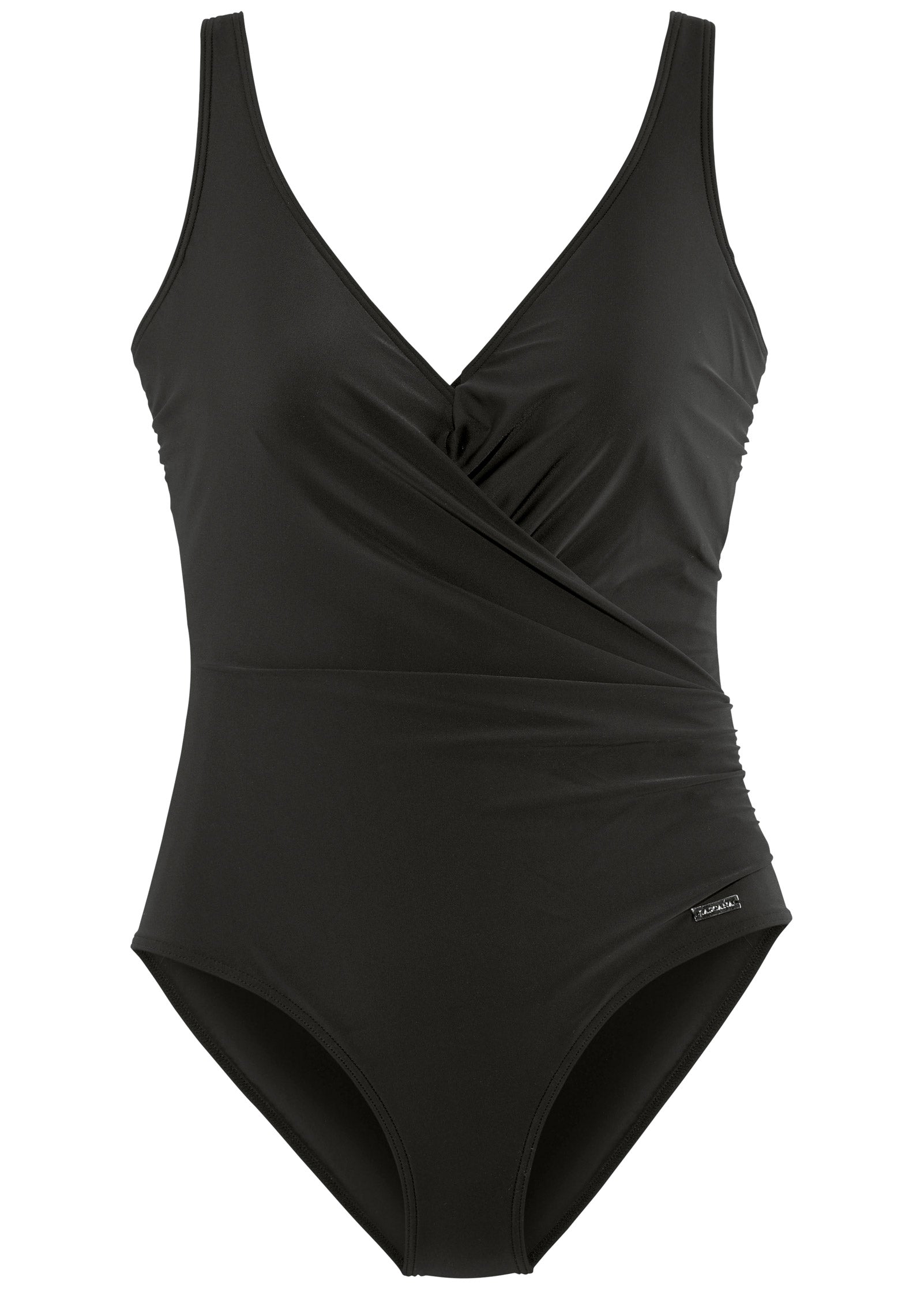 In this sleek one-piece. you'll be ready to soak up every single ray of sun. The extra-flattering V-neckline highlights your top. while the bottoms provide moderate coverage. Sturdy. adjustable straps give you plenty of support. whether you're sipping a drink or taking a dip. Just add your favorite denim shorts or a breezy skirt for a cover-up. and you'll be able to go from beach to bar without missing a beat. * Select size based on your cup size for best overall fit: 2-4 (B Cup). 6-8 (C Cup). 10-12 (D Cup) * V-neckline * Removable pads * Non-detachable over the shoulder straps * Straps are adjustable * By Lascana for VENUS * Domestic or import of poly/elastane.